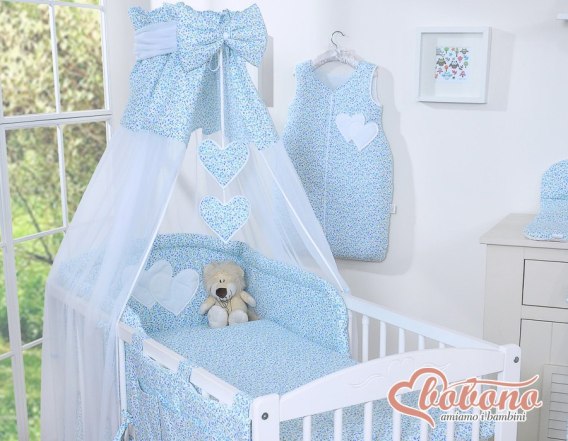 2. Dwa wiszące serduszka z miękkim wypełnieniem to słodkie i niepowtarzalne uzupełnienie kompletu pościeli. Idealnie pasują do aplikacji serduszek znajdujących się na ochraniaczu, przyciągają uwagę dziecka w pierwszych miesiącach życia skutecznie zastępując karuzelkę. Duża gruba kokarda stanowi piękne zwieńczenie całości.