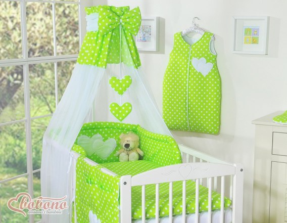 Baldachim z tiulu- Serduszka białe grochy na zielonym