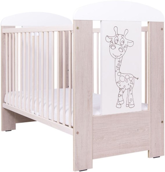 DREWEX Łóżeczko ŻYRAFA dąb santana opuszczany bok 120x60 cm
