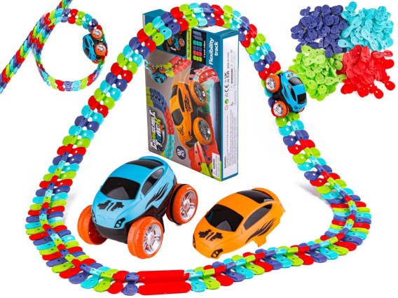Ten zestaw to nie byle jaki zabawkowy tor wyścigowy. Jest kolorowy i niezwykle elastyczny.
