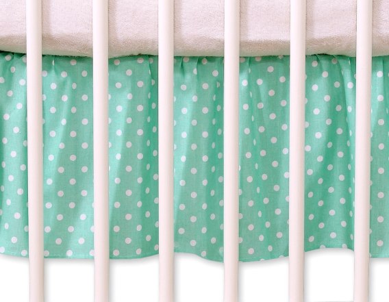 Falbanka maskująca 120x60cm- Wiszące serduszka białe grochy na miętowym