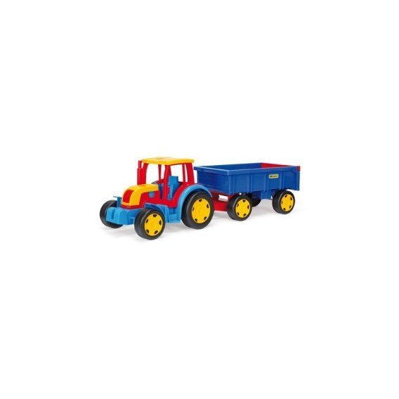 Zestaw o łącznej długości 102 cm, składa się z traktora oraz przyczepy. Pojazdy cechują się masywną konstrukcją oraz ogromną wytrzymałością (nośność traktora to 100 kg, nośność przyczepy to 60 kg).