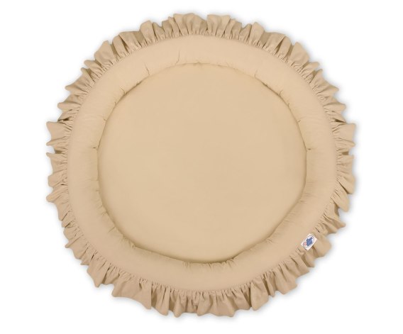 Oryginalne gniazdko z falbanką. Funkcjonalne i praktyczne. Doskonale sprawdzi się jako mini basenik, mata do zabawy lub "podłoga" baldachimu. Szerokie, okrągłe i mięciutkie ścianki zapewnią bezpieczną i udaną zabawę dla każdego malucha. Gniazdko może być używane już od pierwszych dni życia jako wygodny i bezpieczny kokon niemowlęcy a później jako przytulne miejsce do zabawy. Pokrowiec wykonany jest z tkaniny 100% bawełnianej, posiadającej atest Okotex. Boki gniazdka wypełnione są atestowanym włóknem Eco Fillball – mięciutkim włóknem uformowanym w malutkie kuleczki. Dzięki specjalnej technologii produkcji kuleczki te są puszyste i sprężyste, a przy tym w dotyku są miękkie i delikatne jak puch, zapewniają odpowiednią cyrkulację powietrza. Dno gniazdka, to specjalna wkładka wykonana z nowoczesnego antyalergicznego atestowanego surowca. Gniazdko łatwo utrzymać w czystości, pokrowiec jest rozbieralny - można prać w pralce w 30 stopniach.