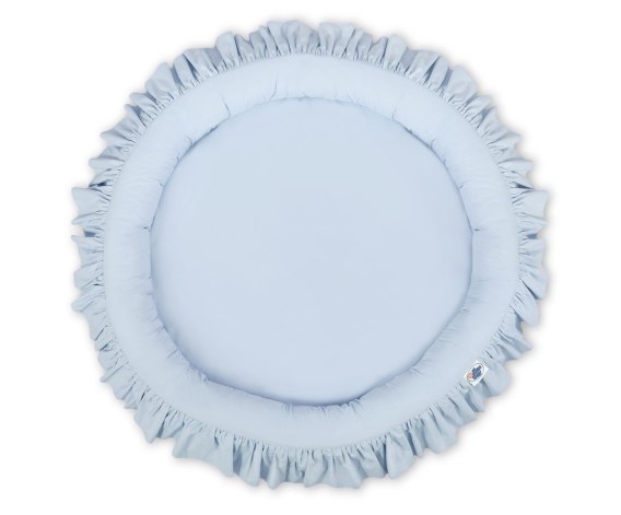Oryginalne gniazdko z falbanką. Funkcjonalne i praktyczne. Doskonale sprawdzi się jako mini basenik, mata do zabawy lub "podłoga" baldachimu. Szerokie, okrągłe i mięciutkie ścianki zapewnią bezpieczną i udaną zabawę dla każdego malucha. Gniazdko może być używane już od pierwszych dni życia jako wygodny i bezpieczny kokon niemowlęcy a później jako przytulne miejsce do zabawy. Pokrowiec wykonany jest z tkaniny 100% bawełnianej, posiadającej atest Okotex. Boki gniazdka wypełnione są atestowanym włóknem Eco Fillball – mięciutkim włóknem uformowanym w malutkie kuleczki. Dzięki specjalnej technologii produkcji kuleczki te są puszyste i sprężyste, a przy tym w dotyku są miękkie i delikatne jak puch, zapewniają odpowiednią cyrkulację powietrza. Dno gniazdka, to specjalna wkładka wykonana z nowoczesnego antyalergicznego atestowanego surowca. Gniazdko łatwo utrzymać w czystości, pokrowiec jest rozbieralny - można prać w pralce w 30 stopniach.