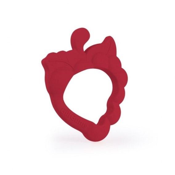 Soczyście czerwona truskaweczka przyniesie ulgę w ząbkowaniu, a jej energetyczny kolor wprawi malucha w pozytywny nastrój. Gryzak wykonany jest w 100% z bezpiecznego silikonu, dzięki czemu bez trudu utrzymasz go w czystości. Truskawkę zdobią wypustki, które podczas gryzienia delikatnie masują obolałe dziąsła malucha.
