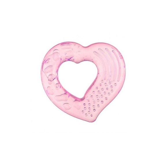 Śliczny gryzaczek w kształcie różowego serduszka wypełniony chłodną wodą. Posiada on wypustki, które przyniosą ulgę podrażnionym dziąsłom Twojego Maluszka. a dzięki dużemu otworowi pośrodku jest wygodny do chwytania przez małe rączki.