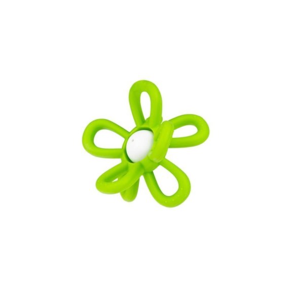 Zieloniutki kwiatek zabawi malucha wesołym grzechotaniem! We wnętrzu zabawki kryje się grzechocząca kula, a naokoło niej znajdują się elastyczne płatki- pętelki, które ułatwiają najmłodszym chwytanie zabawki. Pętelki zdobią wypustki, dzięki którym sprawdzą się ona także w roli gryzaka.