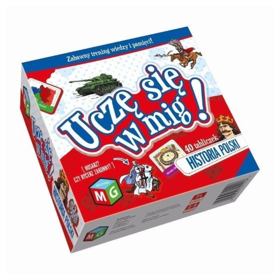 "UCZĘ SIĘ W MIG - HISTORIA POLSKI" to wspaniała gra, która rozwinie pamięć i spostrzegawczość Twojego dziecka. Dodatkowo poszerzy jego wiedzę z zakresu historii Polski i pomoże obudzić w nim pasję do historii zapewniając przy tym dużo dobrej zabawy i emocji. W grze wygrywa ten, kto ajlepiej zapamięta położenie par dat i wydarzeń historycznych, odkrytych na chwilę, spośród wszystkich ilustrowanych tabliczek leżących na stole rewersem do góry. Zawartość pudełka: ilustrowane tabliczki - 40szt, instrukcja.