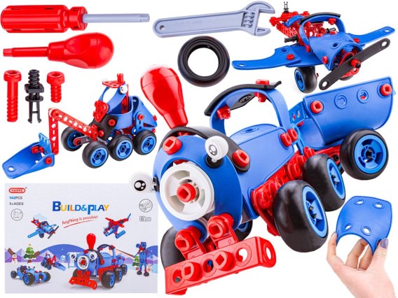 Klocki Elastyczne, Konstrukcyjne 142 El. Ciuchcia, Samolot, Helikopter, Auto Do Rozkręcania I Skręcania 6w1