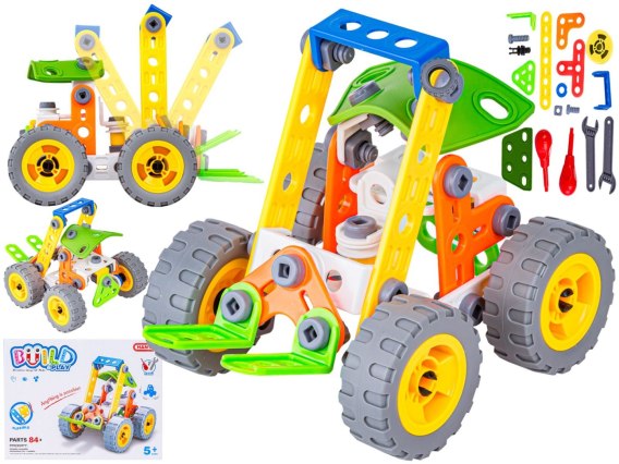 Klocki Elastyczne Konstrukcyjne 84 El., Ładowarka, Wózek Widłowy, Pojazd Budowlany Do Rozkręcania I Skręcania