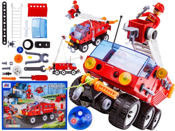 Klocki Konstrukcyjne STRAŻ POŻARNA 159 El. Pojazdy Ratunkowe, Ciężarówka, Helikopter, Auto Do Rozkręcania I Skręcania 7w1
