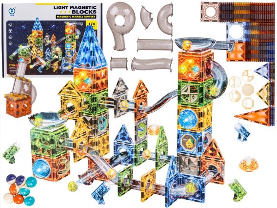 Klocki Magnetyczne Konstrukcyjne TOR KULKOWY Świecące Elementy 174 El. Kulodrom
