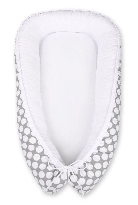 • Kokon niemowlęcy dwustronny kojec otulacz Premium BOBONO- kółeczka szare/biały