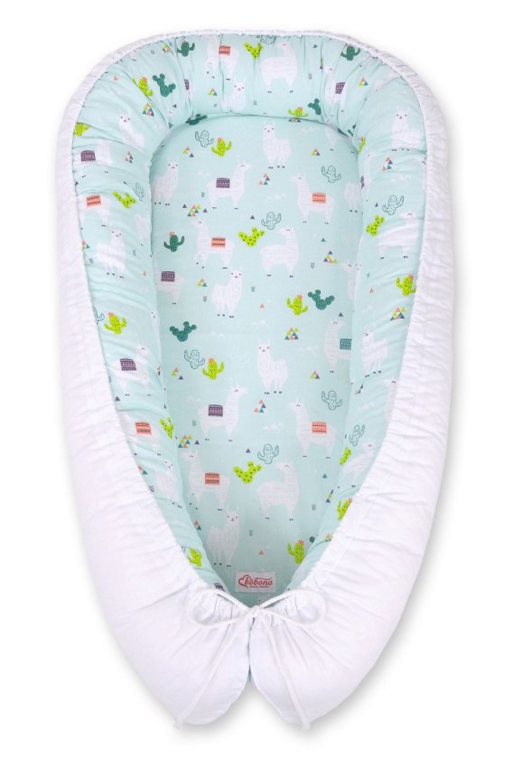 • Kokon niemowlęcy dwustronny kojec otulacz Premium BOBONO- lamy miętowe