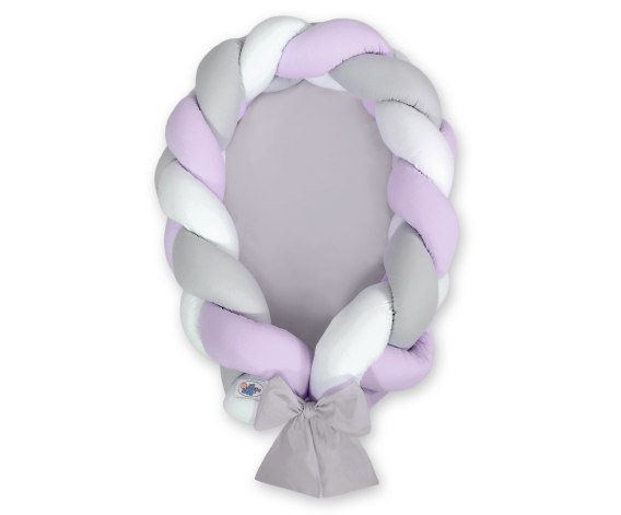 Kokon niemowlęcy pleciony 2 w 1- biało-fioletowo-szary