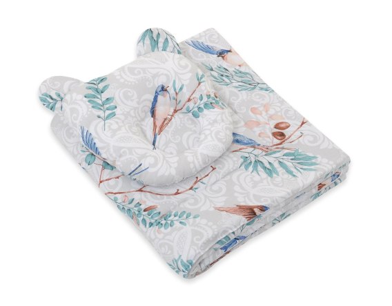 • Kołderka z wypełnieniem i poduszka profilowana Miś - zestaw 2cz. - Blue birds