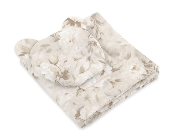 • Kołderka z wypełnieniem i poduszka profilowana Miś - zestaw 2cz. - Peonies beige
