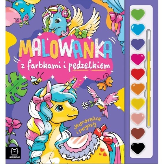 Piękne obrazki, pędzelek i zestaw farbek to propozycja dla małych artystów. Zapraszamy na spotkanie z niezwykłymi jednorożcami i pegazami - poznaj każdego z nich z osobna. Są tu: latająca w obłokach Gwiazdka, kochająca kwiaty Flora, elegancka Liliana, piękna Bella i urocza Amelia, kochajaca nocne loty Urania, szalona młoda Sonia, kochająca zwierzęta Gracja, Marietta i Marbena. Który jednorożec marzył o skrzydłach i je otrzymał? Który pegaz uwielbia nocne niebo? Kto towarzysz Soni w jej ucieczce z pałacu? Lubiana przez dzieci tematyka rysunków i ciekawe historyjki o niezwykłych konikach zachęcą dzieci do kolorowania. Malowanki ze zwierzakami to świetna zabawa kolorami, która rozwinie kreatywność i sprawność manualną dziecka. Pozwoli również ćwiczyć cierpliwość i koncentrację. Dołączony do książeczki zestaw 10 kolorów farbek i pędzelek pozwalają dziecku rozpocząć zabawę gdzie i kiedy chce - wystarczy tylko odrobina wody. Baw się kolorami razem ze zwierzętami! Malowanka z farbkami i pędzelkiem to strzał w dziesiątkę!