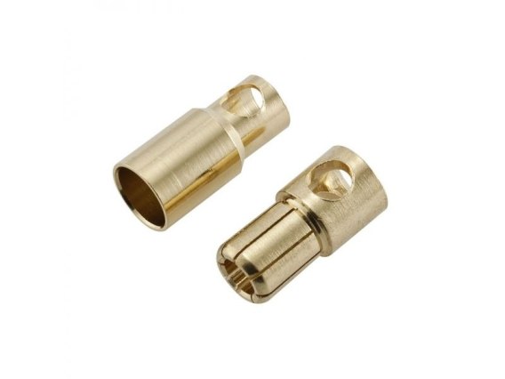 Komplet pozłacanych konektorów typu "banan" (wtyk + gniazdo) 6 mm o płaskiej (powiększonej) powierzchni styku.