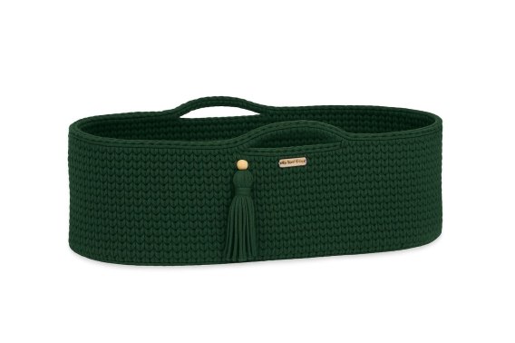 Kosz Mojżesza BOHO bawełniany Handmade z materacykiem - butelkowa zieleń