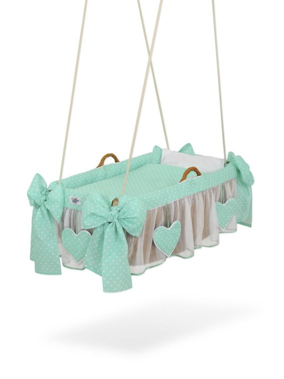 Kosz Mojżesza kołyska wisząca- Grochy na mięcie