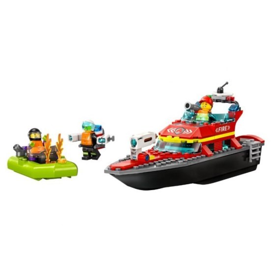 W tym zestawie LEGO® City Łódź strażacka (60373), w którym jest fajna łódź strażacka i motorówka, czekają na dzieci ekscytujące strażackie przygody. Dzieci mogą wyrzucać klocki imitujące wodę z gaśnicy i użyć plecaka odrzutowego, by ugasić płomienie. Wystarczy dodać trzy minifigurki i można zaczynać zabawę.