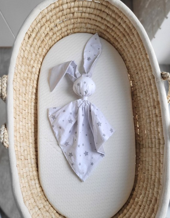 • Miękka przytulanka kocyk króliczek z bawełny - Mini gwiazdki szare/ szary