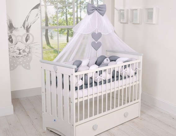 - Dwa wiszące serduszka z miękkim wypełnieniem to słodkie i niepowtarzalne uzupełnienie kompletu pościeli.Przyciągają uwagę dziecka w pierwszych miesiącach życia skutecznie zastępując karuzelkę. Duża gruba kokarda stanowi piękne zwieńczenie całości.