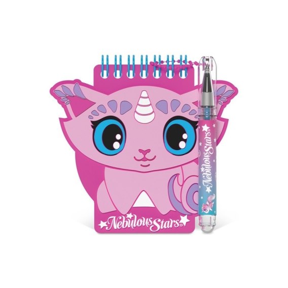 Podręczny notatnik do zapisywania snów, sekretów i złotych myśli. 25 kartek w linie oraz żelowy mini długopis w zestawie. Kieszonkowy rozmiar, pozwalają na zabieranie notatnika wszędzie tam, gdzie znajdzie się jego posiadacz. Wewnątrz znajduje się też strona z naklejkami foliowymi. Notes mieści się w kieszeni, dlatego będzie idealnym rozwiązaniem do zapisków i rysunków w podróży czy podczas przerwy w lekcjach. Piękna kolorystyka nawiązuje do magicznej krainy Nebulous.