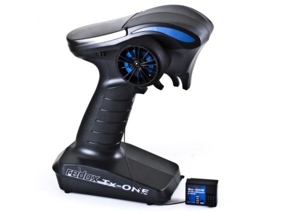 3-kanałowy nadajnik modelarski Redox Tx-ONE przeznaczony do pracy ze zdalnie sterowanymi modelami samochodów i motorówek (i innych łodzi). Lekki i poręczny, intuicyjny i prosty w użyciu, idealny dla początkujących i średnio-zaawansowanych modelarzy. Dzięki ergonomicznie zaprojektowanej rękojeści, nadaje się zarówno dla młodszych jak i starszych użytkowników (wygodny uchwyt niezależnie od rozmiaru dłoni). Koło kierownicy wyłożone miękką i dobrze "przyczepną" do palców pianką zapewniającą precyzję sterowania.