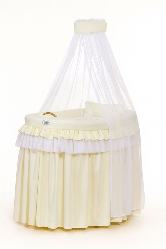 Obszycie 4-cz do kosza Mojżesza wiklinowego ze baldachimem Little Prince Princess -kremowe