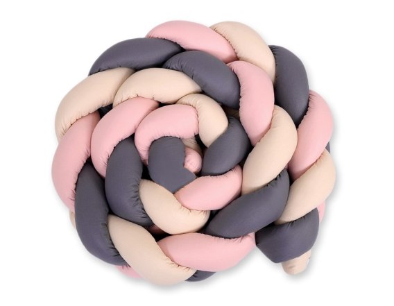 Ochraniacz warkocz pleciony do łóżeczka XXL - beżowy-antracyt-brudny róż