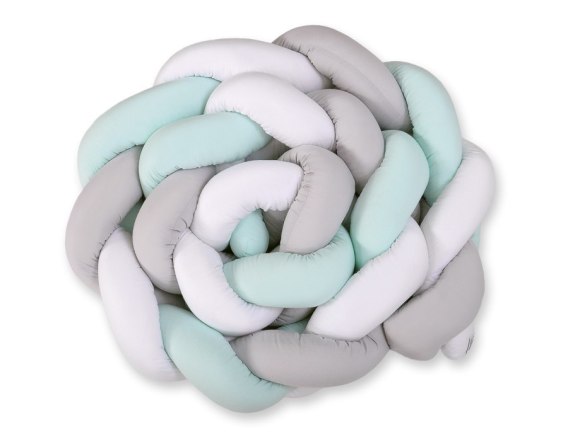• Ochraniacz warkocz pleciony do łóżeczka XXL - biało-szary - miętowy