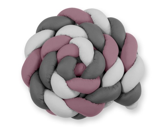 Ochraniacz warkocz pleciony do łóżeczka XXL - retro róż-szary-antracyt