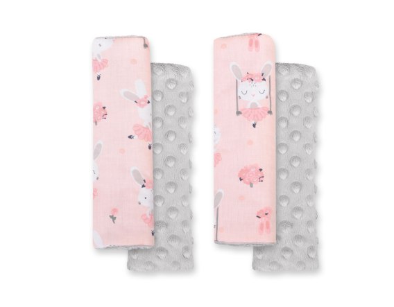• Ochraniacze na pasy BOBONO do wózka minky- króliczki baletnice różowe/szary