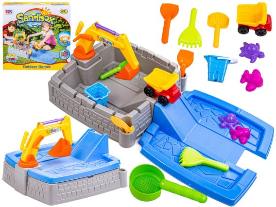 Piaskownica Zamek + Akcesoria, Koparka, Basen, Zjeżdżalnia