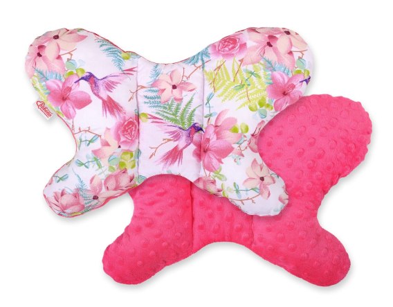 Poduszka antywstrząsowa BOBONO motylek - koliberki w kwiatach/ciemny róż
