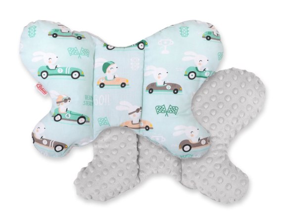 • Poduszka antywstrząsowa BOBONO motylek - zajączki miętowe/szary