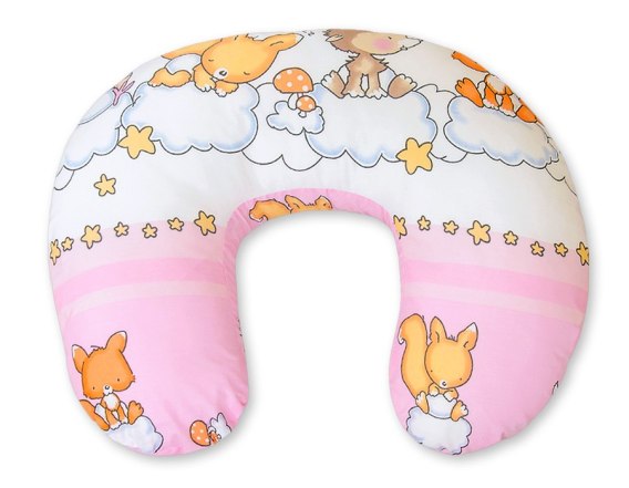 Poduszka rogal do karmienia fasolka + zdejmowana poszewka - leśne zwierzątka różowe