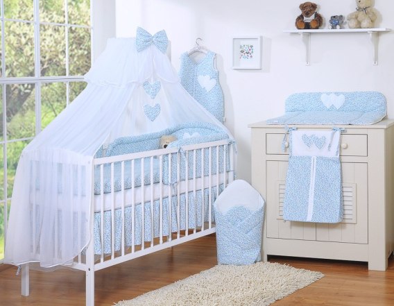 Niepowtarzalny zestaw pościeli 5- elementowej z przepiękną aplikacją serduszek. Nie podrażnia delikatnej skóry dziecka. Wysoki ochraniacz doskonale amortyzuje i ochroni Twoje Maleństwo przed twardymi szczebelkami łóżeczka. Wykonana z trwałej 100% atestowanej bawełny, bezpiecznej dla delikatnej skóry dziecka. W tej pościeli Wasze dziecko będzie spało spokojnie i bezpiecznie.