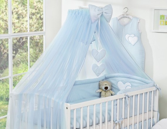 • Pościel 5-cz z moskitierą- Wiszące Serduszka niebieskie
