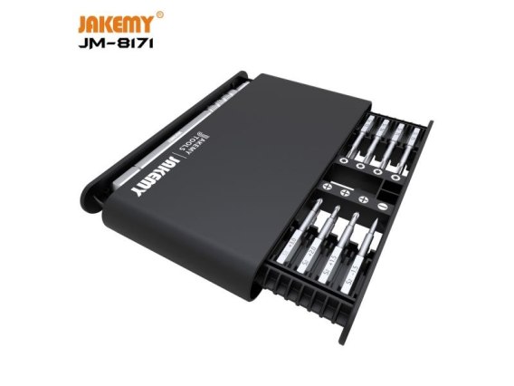 Zestaw Jakemy to precyzyjny zestaw narzędzi o wysokiej jakości wykonania i odporności na ścieranie. Ergonomiczny uchwyt ułatwia pracę narzędziami. Przy otwieraniu zestawu - podstawa z bitami wysuwa się samoczynnie.