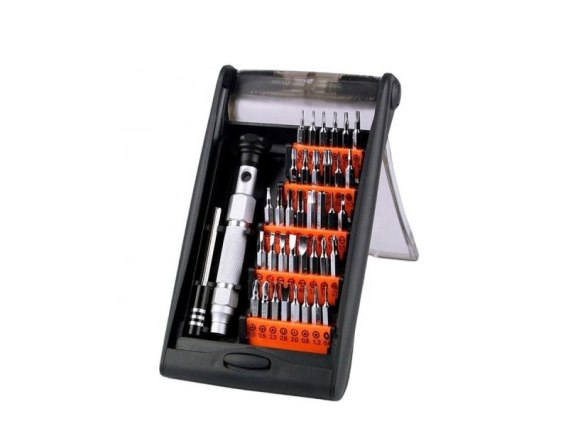 Naprawa nowoczesnych urządzeń elektronicznych wymaga nie tylko umiejętności, ale również wykorzystania odpowiedniego, precyzyjnego sprzętu. Producenci stosują różnego rodzaju zabezpieczenia, co sprawia, że do ich otwarcia wymagane są dodatkowe końcówki, które trudno znaleźć w podstawowych zestawach wkrętaków. Nasz zestaw zawiera aż 36 różnych końcówek (bitów). Każda z nich posiada swoje własne miejsce, co pozwala na zachowanie porządku oraz sprawną organizację miejsca pracy, a tym samym jej szybkie i dokładne wykonanie. Komplet przeznaczony jest zarówno do napraw telefonów, tabletów jak również wszystkich innych urządzeń i sprzętów, które posiadają niestandardowe, drobne śruby.