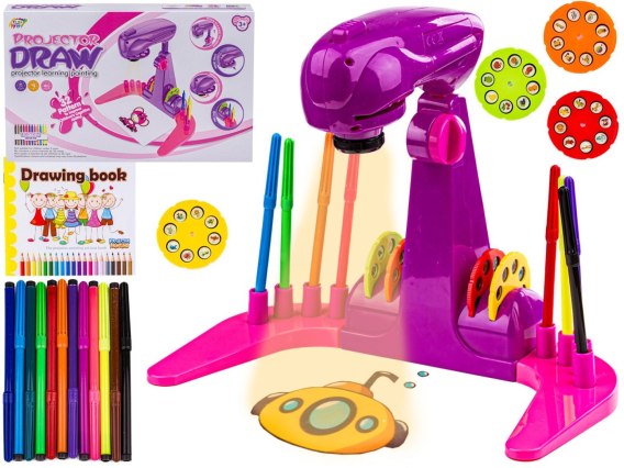 Wybrany wzór wyświetli się na podłożu. Wystarczy podsunąć kartkę do rysowania i rozpocząć przygodę z odrysowywaniem. Malowanie uprzyjemnią dołączone do zestawu kolorowe pisaki - aż 12 sztuk.