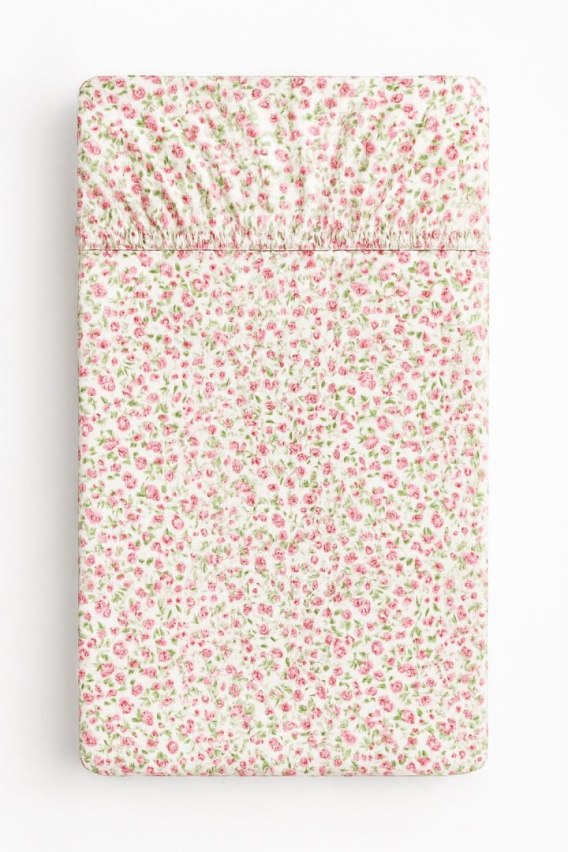 • Prześcieradło bawełniane z gumką do łóżeczka 120x60 cm - łączka różowa
