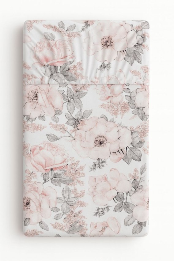 • Prześcieradło bawełniane z gumką do łóżeczka 120x60 cm - róże sepia