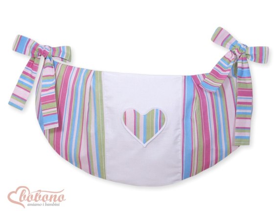 - dwie duże kokardy pozwalają łatwo przywiązać torbę do każdego rodzaju łóżeczka, stanowią także piękną ozdobę.