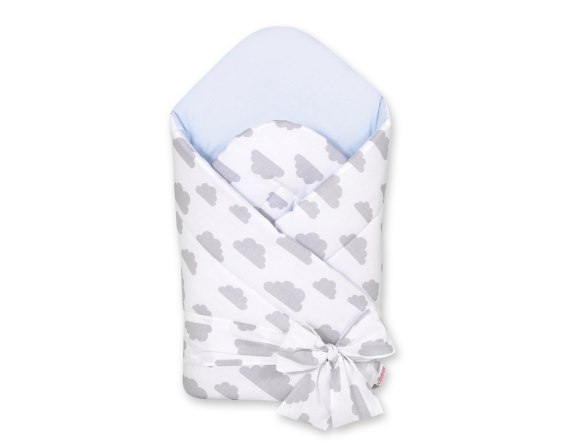 Rożek dla niemowląt z wiązaniem 2w1 usztywniany i miękki - chmurki szare/niebieski