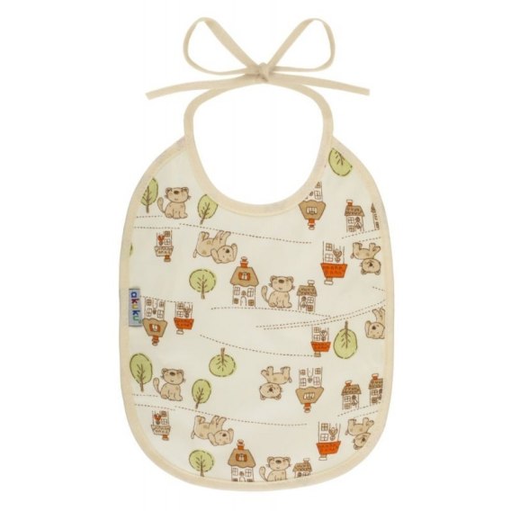 Śliniak wykonany jest z wysokiej jakości bawełny. Wewnętrzna część została podszyta wodoodporną warstwą z miękkiej ceratki, która dodatkowo zabezpiecza ubranie przed zabrudzeniem i czyni śliniak nieprzemakalnym. Wygodne i praktyczne wiązanie podnosi komfort noszenia śliniaka, a kolorowe aplikacje umilają dziecku posiłek. Wyprodukowany w Polsce.