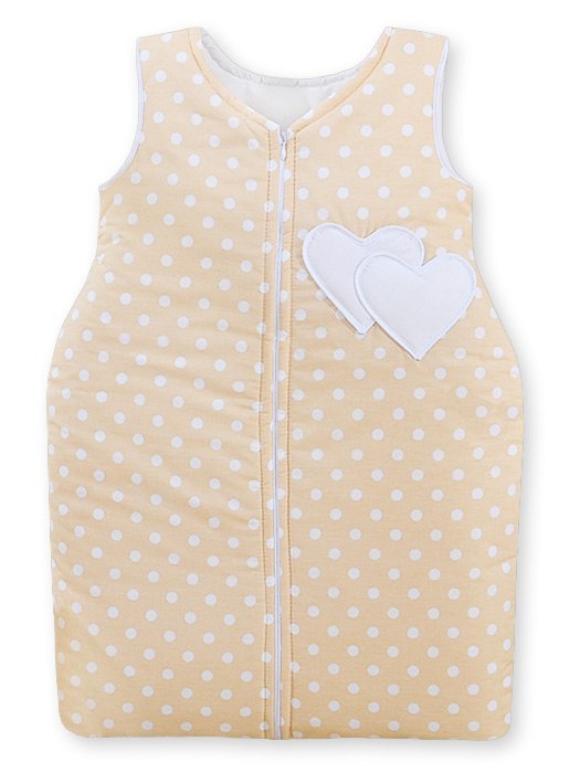 • Śpiworek dla dzieci bawełniany M 6-12 mcy TOG 2.5 całoroczny ocieplany serduszka grochy na beżowym